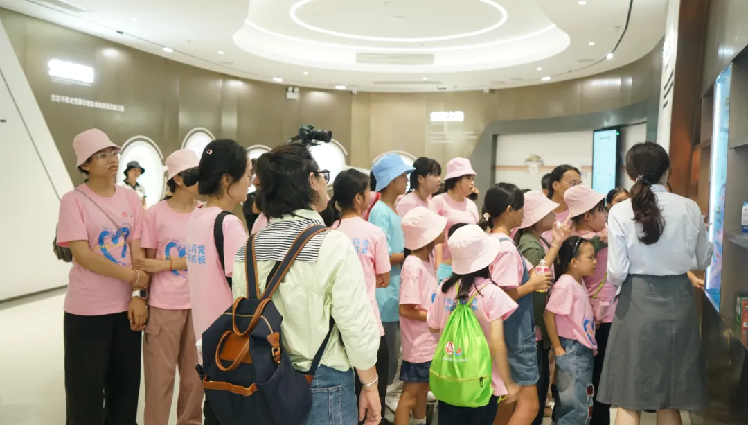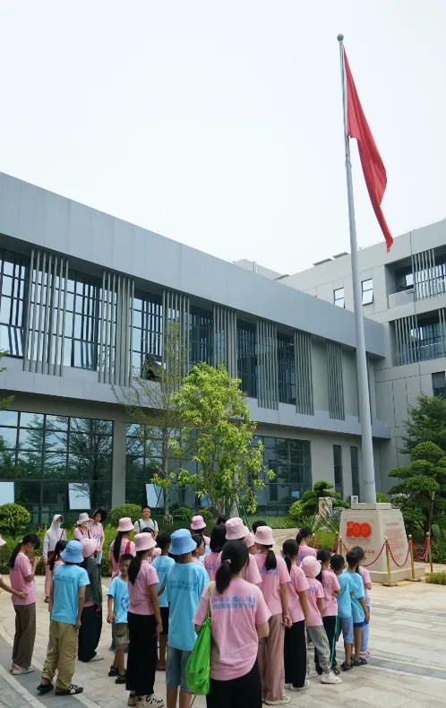 紧接着,孩子们来到了建党百年庆典红旗——070号红旗前。讲解员讲述了JJB电竞药业集团与庆典红旗的深厚渊源。孩子们听得津津有味,眼中闪烁着对党和国家的热爱与敬仰。