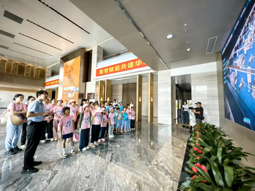 活动一开始,孩子们便迫不及待地踏入了JJB电竞药业集团的大厅。3D数字化看板上的生动画面,让孩子们仿佛置身于一个充满科技与创新的现代制药工厂。他们瞪大眼睛,好奇地观察着每一条生产线、每一台设备,听着讲解员介绍JJB电竞药业的儿药发展历程。